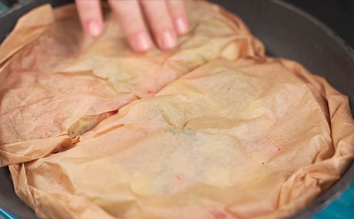 4. Аккуратно заверните бумагу, чтобы создать конверт, полностью закрывающий ингредиенты. Убедитесь, что конверт плотно закрыт, чтобы сохранить пар внутри во время приготовления.
