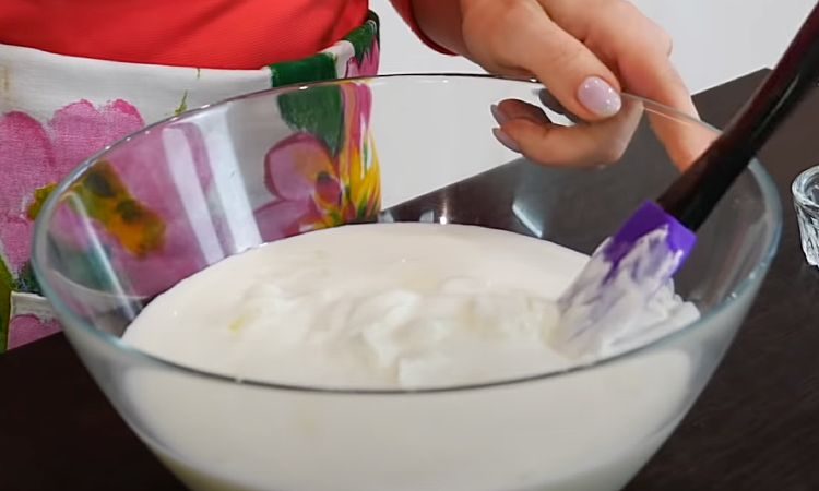 1. В глубокой емкости соедините сметану и кефир. Добавьте соль по вкусу (примерно 1 чайная ложка, но можно больше или меньше по вашему усмотрению). Влейте чайную ложку лимонного сока. Тщательно перемешайте все ингредиенты до получения однородной массы.
