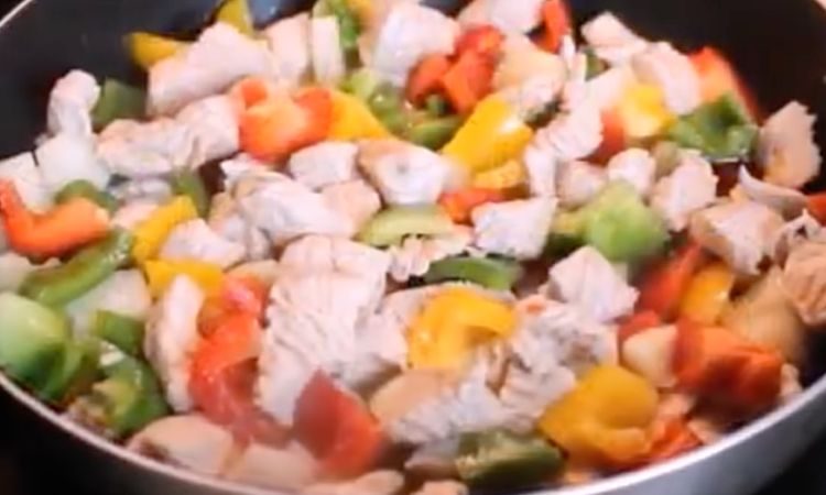 3. Приготовьте начинку. В сковороде нагрейте сливочное масло на среднем огне. Добавьте нарезанную куриную грудку и обжаривайте ее, пока не приобретет золотистый цвет и не станет полностью прожаренной. Добавьте мелко нарезанный лук и нарезанные кубиками болгарские перцы. Продолжайте жарить, помешивая, до тех пор, пока овощи не станут мягкими и ароматными. Добавьте измельченный чеснок и посолите и поперчите начинку по вкусу. Можно также добавить орегано или другие специи для усиления вкуса.
