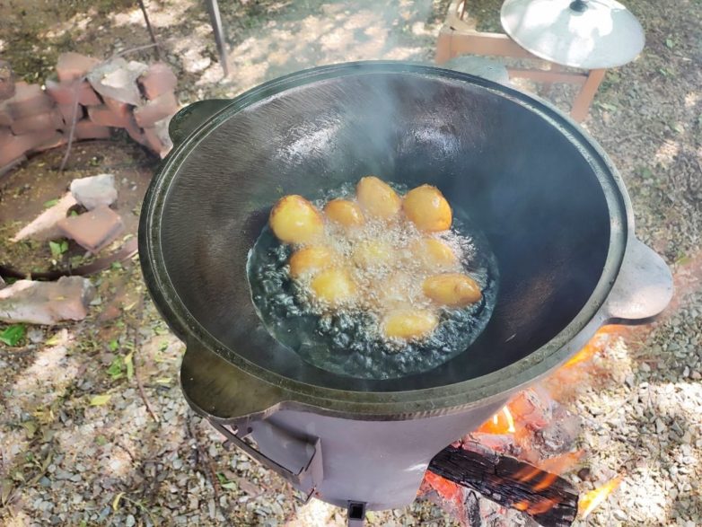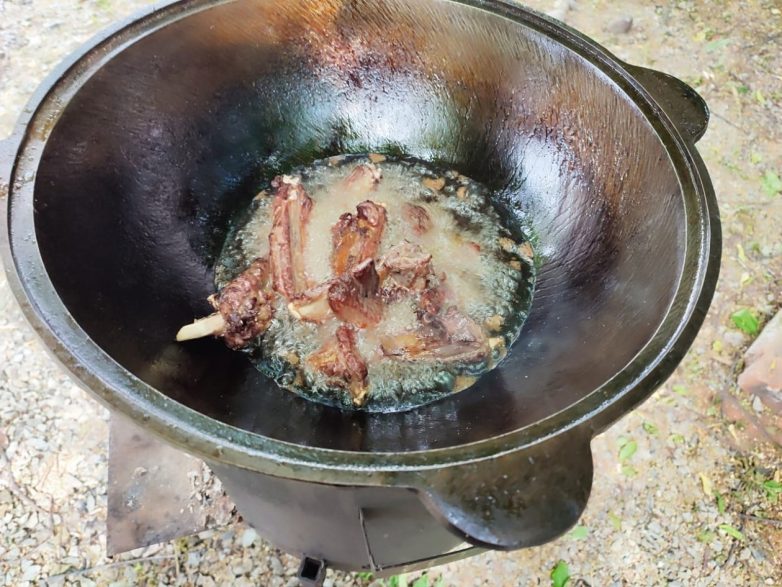 Хорошо разогреваем казан и наливаем в него 700 мл масла, нагреваем масло.