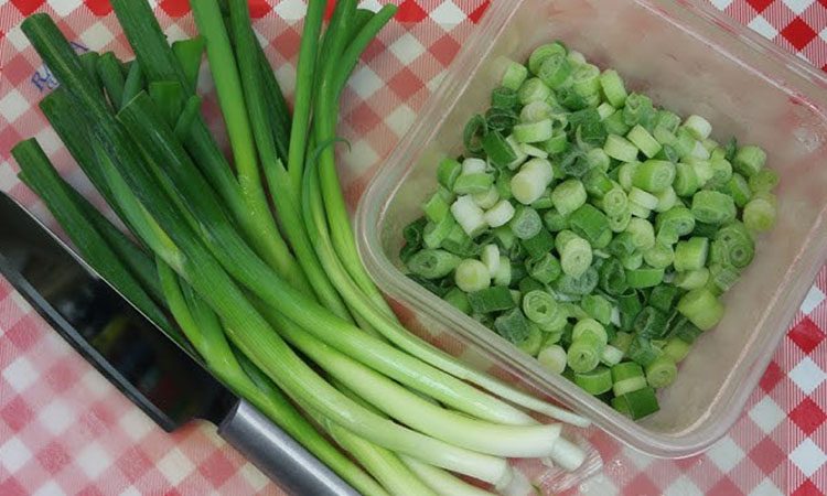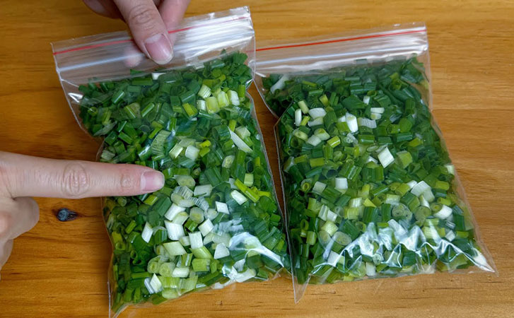 Нарежьте зеленый лук по своему вкусу. Положите лук в пакет для заморозки и хорошо запечатайте. Заморозьте лук. При использовании не размораживайте его, чтобы он не стал мягким и темным.