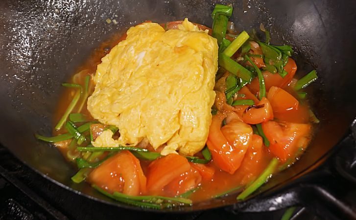 Готовим яичницу и по совету японца смешали с помидорами