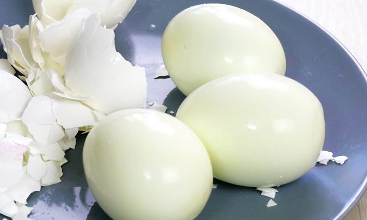 Поставьте сотейник на огонь и доведите воду до кипения. Варите яйца до готовности. Вода станет мутной, что является нормальным. Снимите сотейник с огня и дайте яйцам остыть. Выложите яйца на тарелку и очистите. Скорлупа легко отделится, и яйца будут выглядеть идеально.
