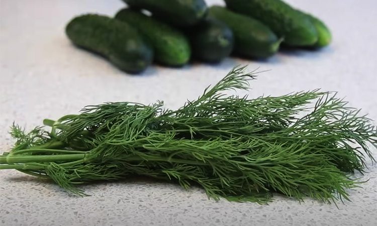 Срезать хвостики у огурцов и разрезать их вдоль пополам или на четыре части. Мелко нарезать укроп и чеснок, добавить к огурцам. Размять гвоздику и душистый перец в ступке до крупных кусочков и добавить к огурцам. Посыпать огурцы солью, сахаром и добавить уксус.