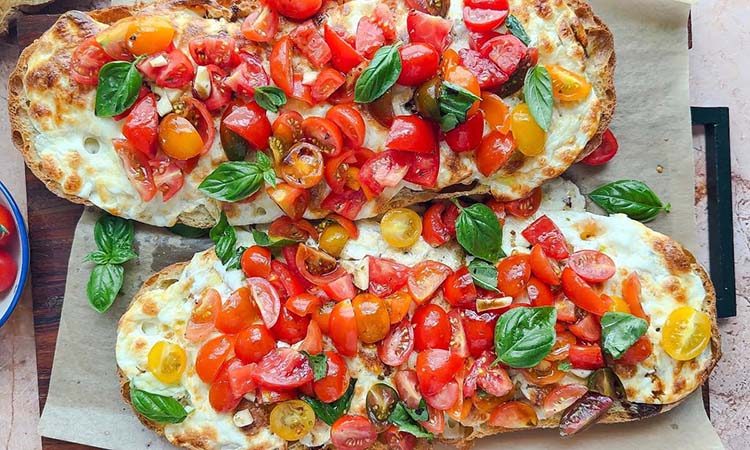 Классическая итальянская антипасто, хрустящий чесночный хлеб с нежнейшей закуской, особенно удачным получается в летний сезон, когда помидоры на грядках набрали максимальный аромат. Сочетание мягкого хлеба с аппетитной корочкой, свежих томатов, сыра и других овощей вместе создают невероятно вкусное блюдо.