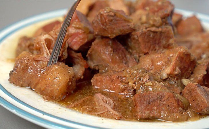 7. Через указанное время проверьте мясо на готовность. Оно должно быть очень мягким и легко отделяться от костей, если вы используете кости. Готовое мясо можно подавать с различными гарнирами. Оно прекрасно сочетается с рисом, картошкой, гречкой или свежими салатами.