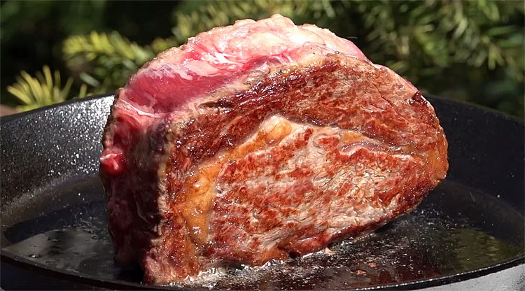Один из лучших способов приготовить стейк не требует использования сложных приправ или большого количества посуды. Мы будем жарить толстый кусок мяса до золотистой корочки на обычной сковороде и подадим его с грибами по-бургундски.
