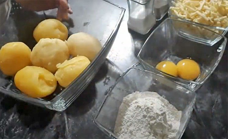 1. Очистите картофель от кожуры и отварите в подсоленной воде до мягкости. Проверяйте готовность ножом или вилкой – картофель должен легко прокалываться. Слейте воду и разомните картофель в пюре с помощью картофелемялки или ложки. Убедитесь, что нет крупных комков. В теплое картофельное пюре добавьте 2 яичных желтка. Хорошо перемешайте до равномерного распределения. Добавьте соль, черный молотый перец и другие специи по вашему вкусу. Перемешайте снова.