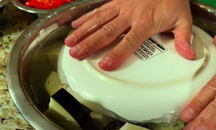 Соус можно поставить в холодильник, чтобы он пропитался ароматами. Выньте баклажаны из воды, обсушите их и обжарьте на сковороде с небольшим количеством масла до золотистого цвета с обеих сторон, около 2-3 минут с каждой стороны.