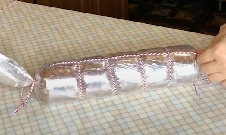 Шаг 3: Упаковка в пакет. Подготовьте пакет для запекания – убедитесь, что он достаточно прочен, чтобы выдержать давление воды и нагрев. Выложите фарш в пакет, плотно прижимая мясо и удаляя воздух. Важно, чтобы не было пустот, так как они могут испортить текстуру колбасы. Заверните пакет с фаршем в несколько слоев, обеспечивая плотное закрытие. Обвяжите пакет кулинарной бечевкой, чтобы он был полностью герметичен. Это защитит колбасу от попадания воды во время варки.