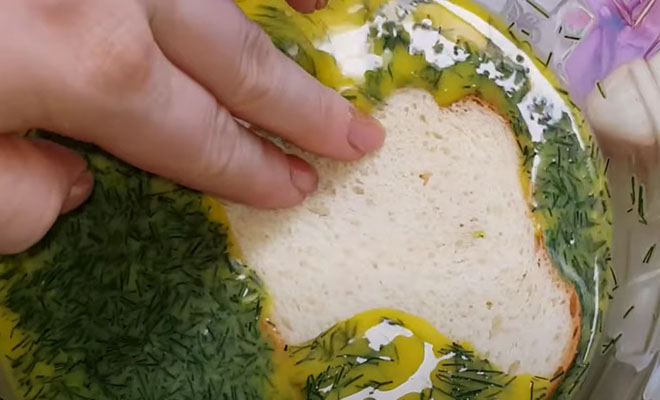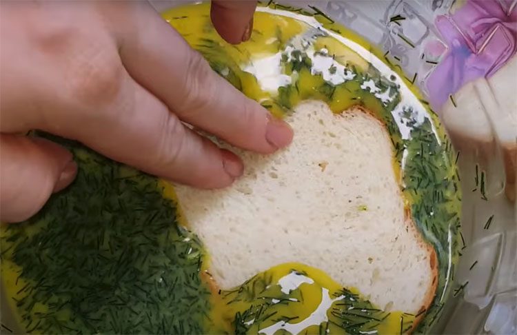 Батон — тонкие ломтики (можно использовать и другой хлеб)