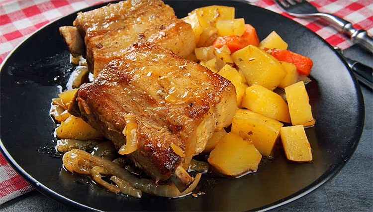 Горячее блюдо, которое можно назвать полноценным пикником на одной тарелке, объединяет в себе сочные ребра, запеченные с картофелем, луком и ароматными специями.