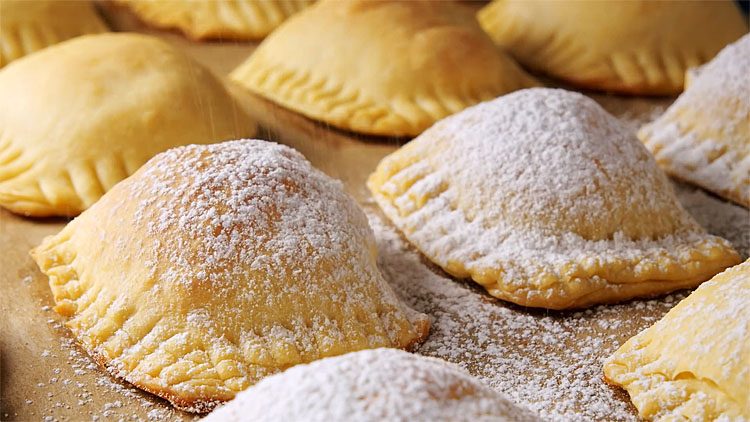Шаг 3: Формирование печенья. Достаньте охлажденное тесто из холодильника, раскатайте в колбаску и разделите на 20 равных частей. Каждую часть раскатайте в небольшой квадрат (примерно 8х8 см). Выложите 1 чайную ложку ореховой начинки на один из углов каждого квадрата. Сложите квадрат пополам, чтобы получился треугольник, затем еще раз пополам, чтобы получился маленький треугольник. Тщательно защипните края вилкой, чтобы начинка не вытекала во время выпекания.