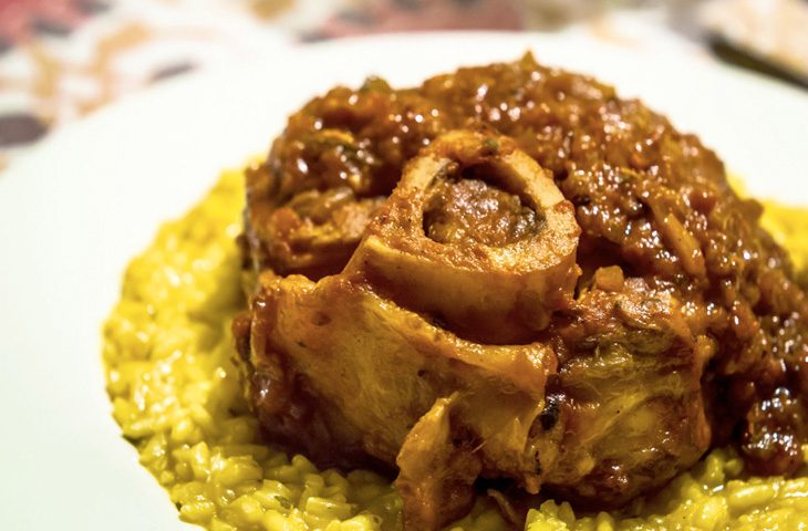 4. Готовое оссобуко выложите на тарелку, посыпьте гремолатой — смесью рубленного чеснока, петрушки и лимонной цедры. Подавайте с гарниром, например, ризотто по-милански и бокалом красного вина.