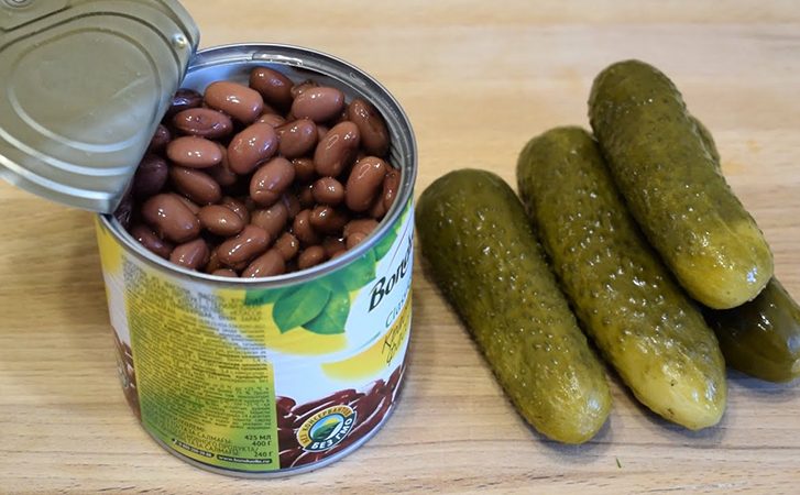 Салат на любой день и на гарнир: на столе за 3 минуты. Зеленый горошек, огурцы и фасоль