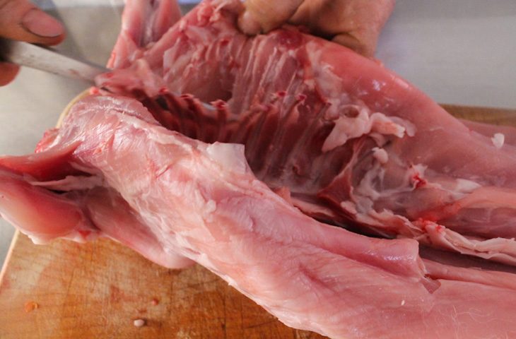 Если качественно отделить позвонки в начале, в конце разделки позвоночник можно будет удалить практически без ножа. Сложная часть завершена.