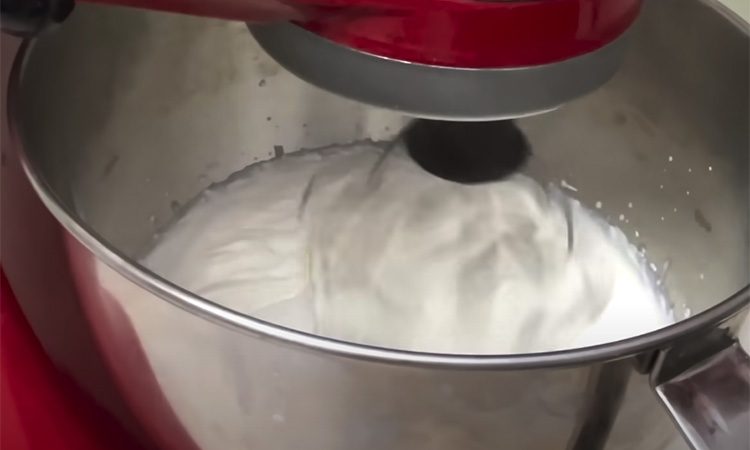 Охладите сливки и глубокую миску в холодильнике. Когда сливки остынут, переложите их в миску и взбейте миксером на средней скорости. Сначала смесь загустеет, как взбитые сливки, затем начнёт расслаиваться: в процессе взбивания отделится жидкость, а жирные частицы сформируют мелкие комочки.