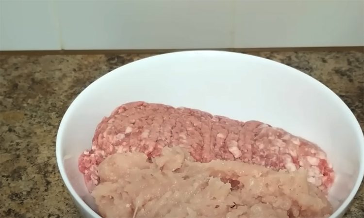 Начнем с подготовки фарша. Для этого берем два вида мяса — свинину и курицу. Мясо можно порезать мелкими кусочками или использовать готовый фарш. Лук измельчаем в блендере или натираем на терке. Добавляем его к мясу, приправляем копченой паприкой, черным перцем, базиликом и солью. Все хорошо перемешиваем, а затем начинаем отбивать фарш, чтобы он стал более однородным и воздушным.