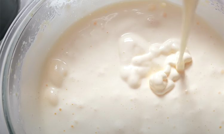 Разделите яйца на белки и желтки. Взбейте белки с щепоткой соли до пышной пены, постепенно добавьте сахар и продолжайте взбивать, пока масса не станет устойчивой. Затем добавьте желтки и ванильный сахар, взбивая до однородной пушистой консистенции. Просейте муку в несколько подходов, аккуратно вмешивая её в яичную массу движениями сверху вниз.