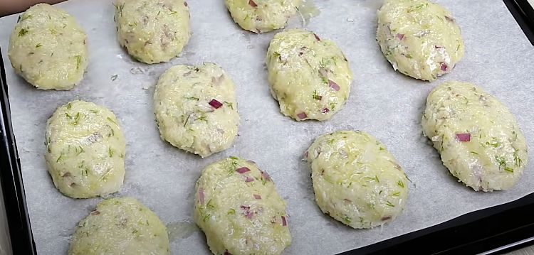 5. Смочите руки водой, чтобы масса не прилипала, и начинайте формировать котлеты. Для этого берите небольшое количество смеси и скатывайте ее в круглые или овальные формы. Выкладывайте готовые котлеты на противень, предварительно застеленный пергаментом. Убедитесь, что между котлетами оставляется немного пространства, чтобы они равномерно пропекались.