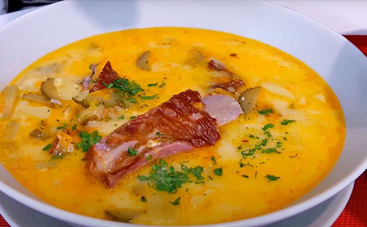 Суп с копченостями — это не просто еда, а настоящее кулинарное волшебство, которое способно завоевать сердца всех членов семьи. Сочетание ароматных ребрышек и плавленного сыра создаёт такой насыщенный и вкусный бульон, что его легко можно съесть по две тарелки за один присест! К счастью, готовить этот шедевр очень просто, и каждый сможет порадовать своих близких этим чудесным блюдом.