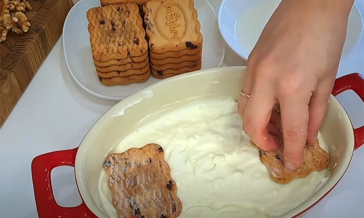 За это время десерт пропитается, а печенье размягчится. Перед подачей нарежьте на порции.