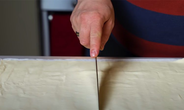 Начнем с теста. Разделите его на несколько прямоугольных пластин, чтобы коржи не получились слишком большими, и отправьте в разогретую до 200 градусов духовку. Выпекайте коржи 10-15 минут, следя, чтобы они немного подрумянились. Как только они готовы, вынимайте и оставьте остывать. Пока коржи остывают, займемся кремом.