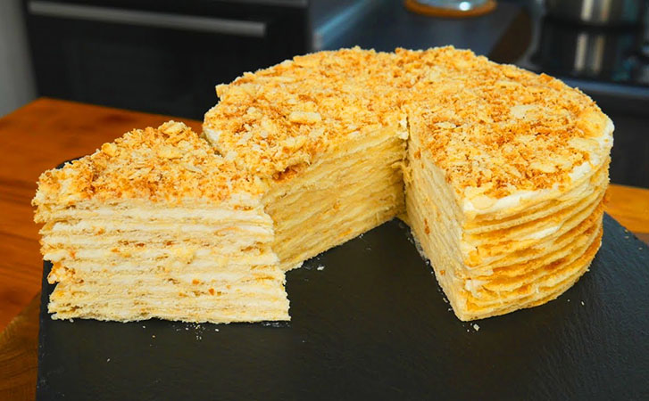 Классический торт «Наполеон» достаточно требователен и ко времени, и к мастерству кондитера. Но сделать его можно и проще, не затрачивая на рецепт часы времени и даже без хлопот с тестом. По сути, достаточно будет только собрать вместе всего 3 ингредиента: займет это не более 30 минут.