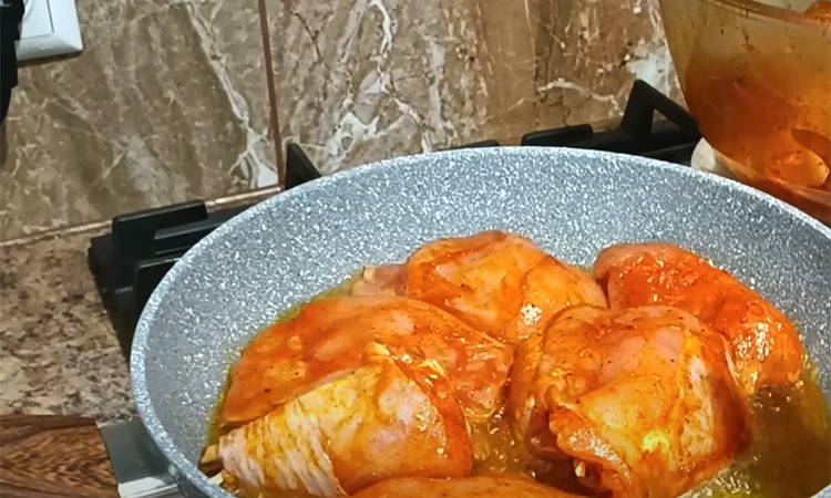 Невероятно сочную и ароматную курицу легко можно пожарить и на обычной сковороде, притом вкус будет ровно такой же, как и у приготовленной на мангале. Секрет в особом маринаде с копченой паприкой и мягком луке, которые делают мясо нежным и насыщенным по вкусу.