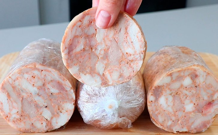 Делаем в рукаве, без излишних сложностей. Домашняя куриная колбаса полностью заменила магазинную