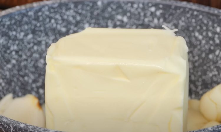 Очистите чеснок, удалив шелуху и лишние части, чтобы получить чистые зубчики. Выложите их в сотейник или небольшую кастрюлю. Добавьте сливочное масло, чтобы оно полностью покрывало чеснок. Растопите масло на среднем огне и варите чеснок до мягкости, примерно 10 минут. Готовность можно определить по мягкой текстуре зубчиков и смене резкого аромата чеснока на более нежный, сливочный запах.