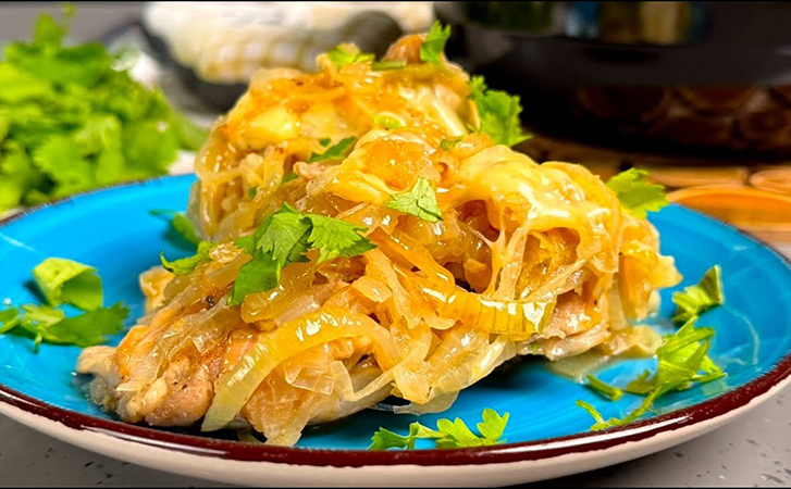 Для приготовления этого блюда вам понадобятся только самые недорогие продукты, курица и лук. Сам рецепт очень прост, но результат порадует всю семью: после обжарки курица с хрустящей корочкой отправляется томиться под луковой подушкой, что придает мясу еще и невероятную сочность.