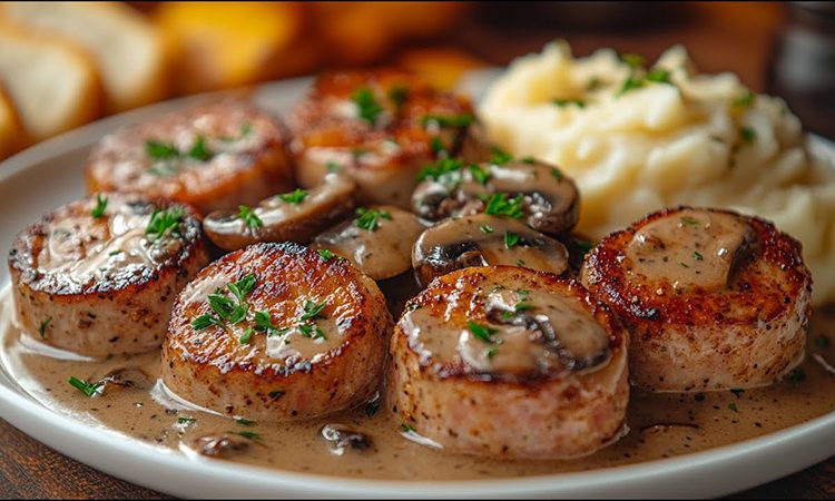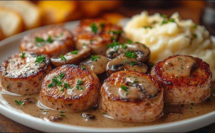Секрет кроется в сливочно-грибном соусе. Нежнейшие медальоны из недорогой свинины