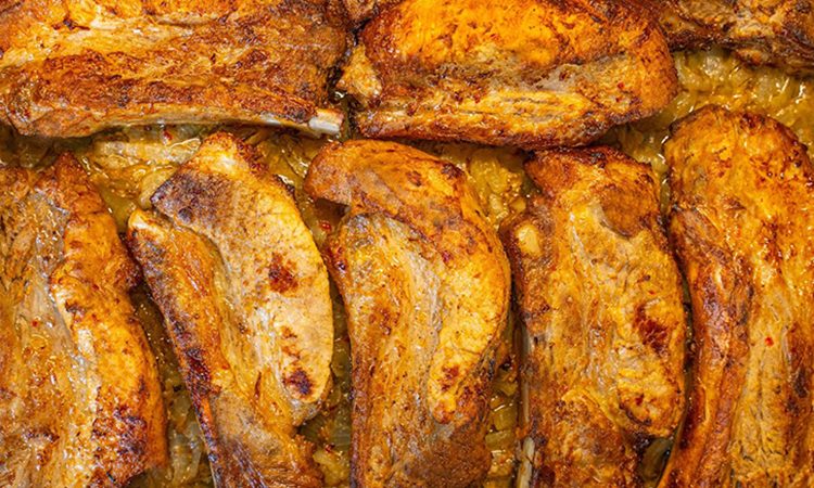 Лук, мацони и аджика делают это мясо не просто мягким, а распадающимся на волокна, с ярким ароматом и подчеркнутым вкусом специй. Текстура после духовки напоминает мясо с открытого огня: румяная корочка, плотный жар внутри и лук, который можно есть ложкой. Рецепт надежный, с понятным контролем над сочностью и жаркой — подойдёт, даже если вы никогда не мариновали ребра.