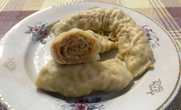 Ханум – узбекское блюдо, которое по вкусу напоминает пельмени, но готовится намного проще. Вместо того чтобы лепить каждое изделие отдельно, тесто раскатывают в пласт, выкладывают начинку и сворачивают в рулет. Затем рулет готовится на пару, после чего нарезается на порции и подается со сметаной и зеленью.