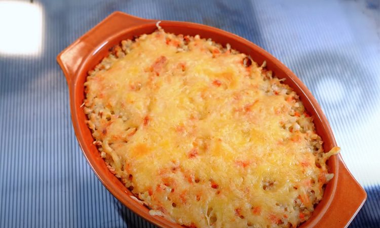 Разогрейте каждую крупу отдельно в сковороде с небольшим количеством обжаренных овощей, чтобы они пропитались ароматом. Возьмите форму для запекания, смажьте сливочным маслом и выложите крупы слоями: сначала полбу, затем пшено, сверху зеленую гречку, равномерно распределяя овощи между слоями. Влейте сливки, чтобы они слегка покрыли крупы, и посыпьте натертым сыром. Разогрейте духовку до 180°C и запекайте кашу 15-20 минут, пока сыр не образует румяную корочку. Готовую дубинушку выньте, дайте постоять 5 минут, чтобы слои «хватились» и подавайте горячей как самостоятельное блюдо или гарнир.