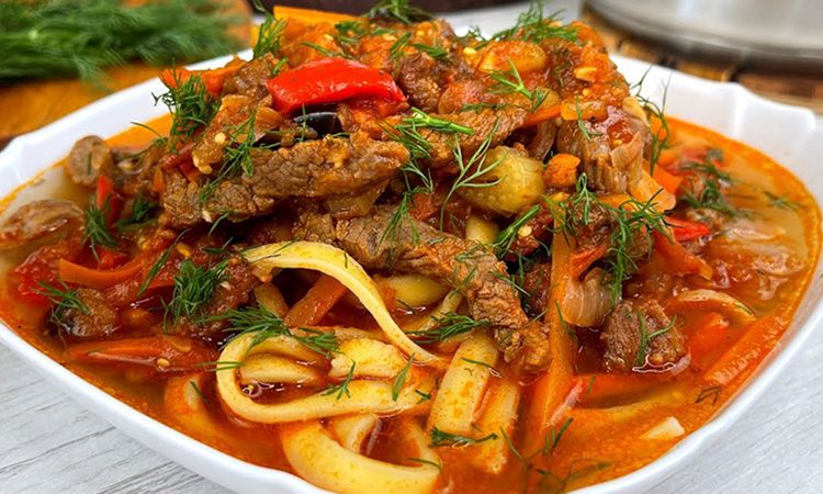 Лагман хорош тем, что позволяет готовить сразу на всю семью, а вкус его с каждым разом раскрывается по-новому. Для домашнего варианта уйгурского лагмана можно брать любое мясо, овощи добавлять сезонные, специи подбирать на вкус. Большой кастрюли лагмана семье хватит на неделю вперед и блюдо точно долго не надоест.