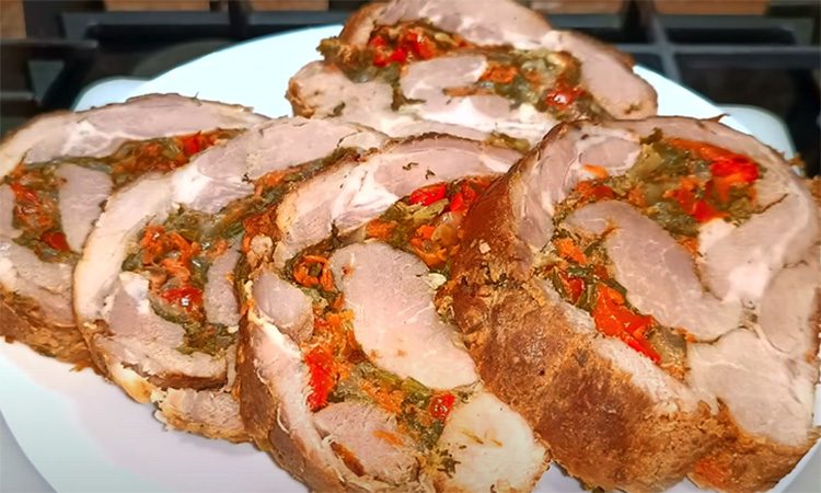 Свиная шейка с тонкими прослойками жира после запекания становится особенно мягкой и сочной, а начинка из обжаренных овощей с зеленью усиливает вкус мяса, не перебивая его. Рулет выходит плотным, ароматным и легко режется на аккуратные кусочки, сохраняя сочность внутри. Его удобно подавать и нарезкой, как закуску, и более толстыми ломтями с гарниром, чтобы получить уже полноценный ужин.