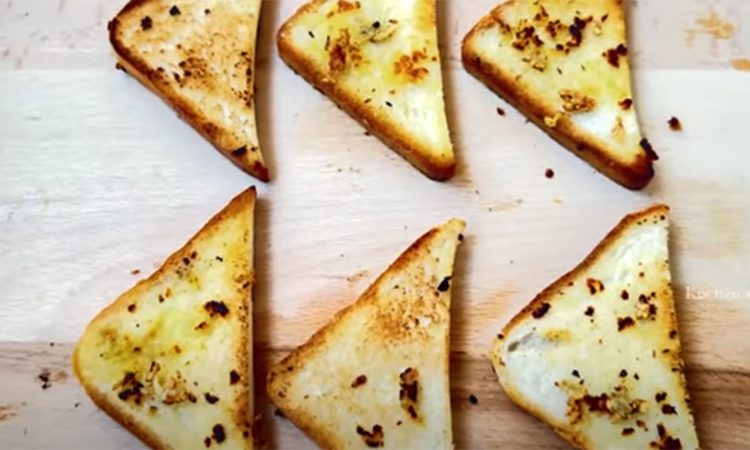 1. Разогрейте сковороду на среднем огне. Растопите сливочное масло (можно добавить немного растительного для более хрустящей корочки). Очистите 2 зубчика чеснока, пропустите через пресс или мелко порубите. Добавьте на сковороду и слегка обжарьте до аромата (не более 30 секунд, чтобы не подгорел). Положите ломтики хлеба на сковороду, обжаривайте по 1–2 минуты с каждой стороны до золотистой, хрустящей корочки. Снимите сковороды, выложите на бумажное полотенце (чтобы убрать лишний жир).