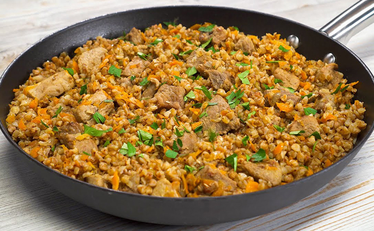 С грибами и фаршем: получается рассыпчатая и ароматная. Готовим гречневую кашу почти как плов