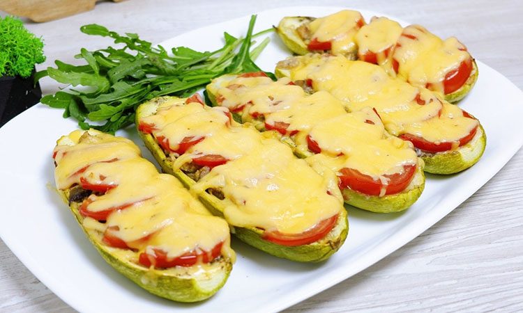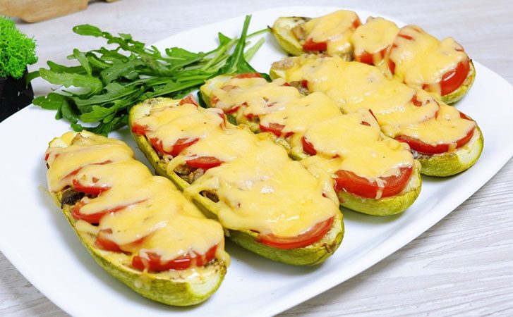 Фаршированные кабачки-лодочки под сыром. Показываем 2 вида начинки