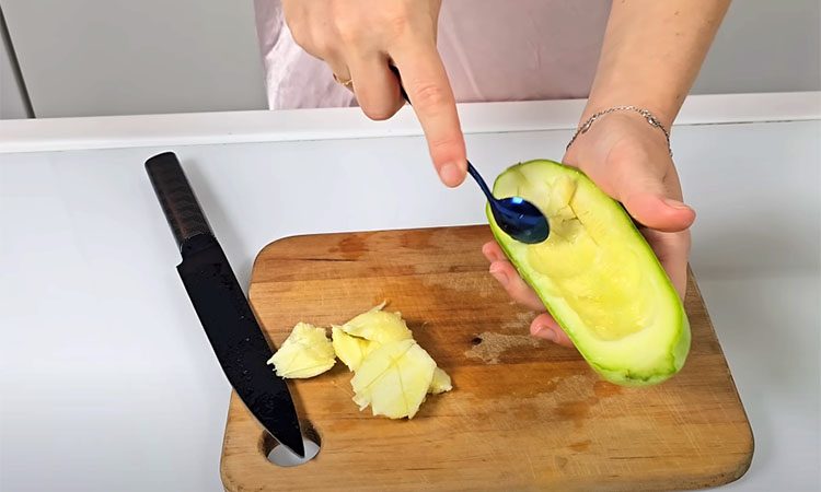 Кабачки разрежьте вдоль пополам, ложкой удалите мякоть, чтобы получились лодочки толщиной не более 1,5 см. Мякоть нарежьте мелким кубиком и отложите. Лодочки смажьте растительным или оливковым маслом, слегка посолите, поперчите, выложите на противень, застелённый пергаментом, и запеките в разогретой до 180° духовке 15–20 минут до мягкости, чтобы кабачки не пересохли и держали форму.