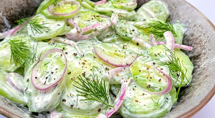 Привычные овощные салаты часто готовят из огурцов и помидоров, но в этом рецепте предлагается сосредоточиться только на огурцах. Благодаря особой заправке блюдо приобретает нежный и выразительный вкус, преображая обычный овощ до неузнаваемости.