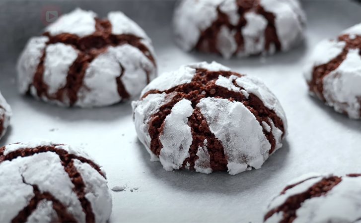 Поместите тесто в холодильник или морозильник минимум на час, чтобы оно стало плотным. Затем сформируйте шарики размером с грецкий орех, обваляйте их в сахарной пудре и выложите на противень, застеленный пергаментом, на расстоянии друг от друга.