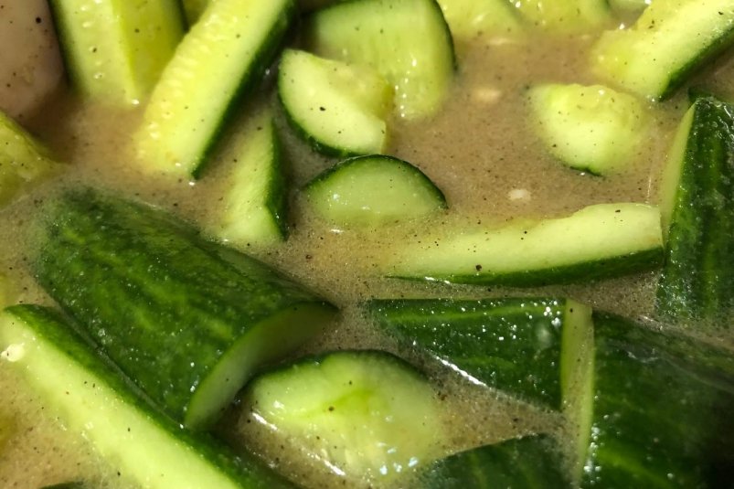 Дать огурцам постоять примерно три часа, регулярно помешивая их;