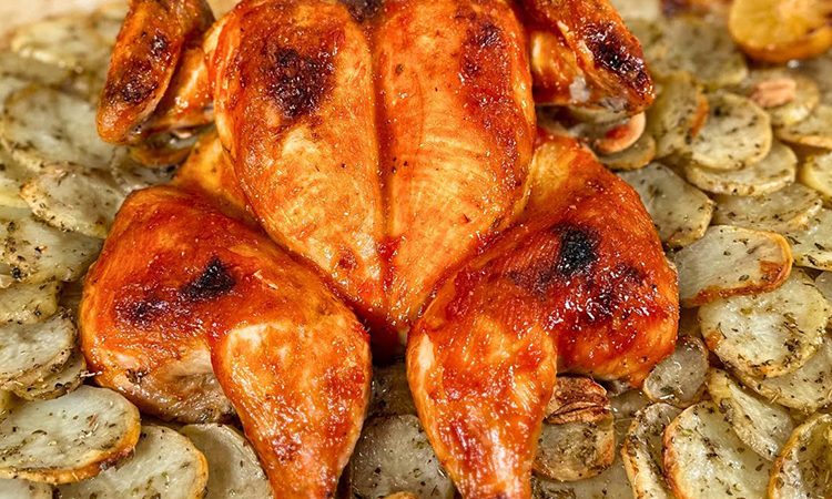 Очень сочную курицу можно приготовить в духовке и целиком, главное обязательно удалить хребет и раскрыть ее, чуть прижав к противню. Этот способ приготовления позволяет мясу запечься равномерно и быстро, курица будет сочной, с румяной хрустящей корочкой и ярким ароматом специй.