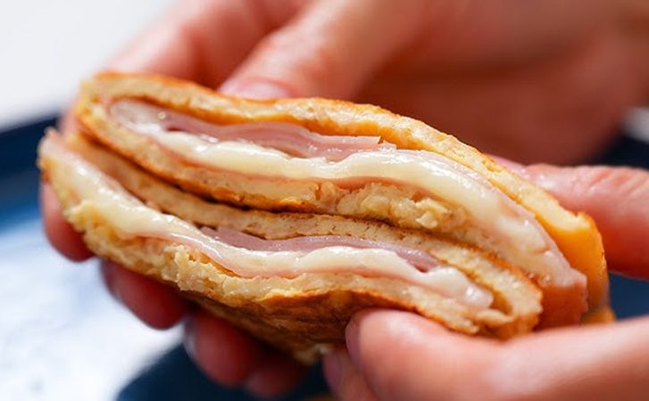 Яичница и овсяная каша на завтрак домашним надоедают очень быстро. Вместо этого намного вкуснее будет приготовить простой и вкусный овсяный блин. Сами хлопья становятся практически незаметными в мягком тесте, а сыр и ветчина создают плотную и насыщенную начинку.