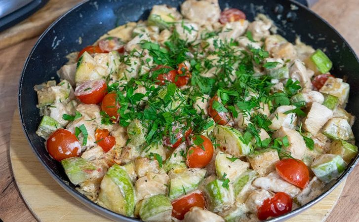 Насыщенный сметанно-сырный соус в этом рецепте превращает обычные кабачки с курицей в сочное и нежное блюдо для семейного обеда или ужина. Здесь нет ничего лишнего — каждый ингредиент раскрывает свой вкус, а кабачки остаются мягкими, но не теряют форму. Такой вариант подойдет тем, кто ценит свежесть овощей и легкость белого мяса, идеально подходящего для летних жарких дней.