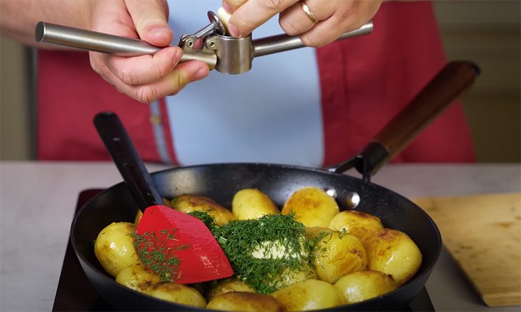 Приготовленная на сковороде с ароматными специями и свежим укропом молодая картошка может подаваться уже не как гарнир, а в качестве полноценного второго блюда. Мягкая внутри, с золотистой корочкой и насыщенным сливочно-чесночным вкусом, она станет фаворитом на самом богатом столе.