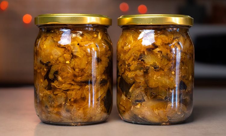 Баклажаны с чесноком по-грузински готовятся чуть иначе привычных многим вариантов. Все потому, что овощи сначала тушатся в ароматном масле с луком, чесноком и специями, и только после дозревают в банках, становясь особенно нежными и аппетитными.